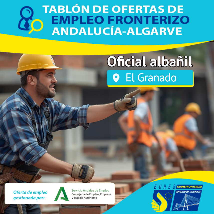El EURES-T AA informa de estas dos vacantes de empleo para trabajar como oficial albañil en construcciones situadas en El Granado. Se busca un profesional polivalente y con experiencia en el oficio.