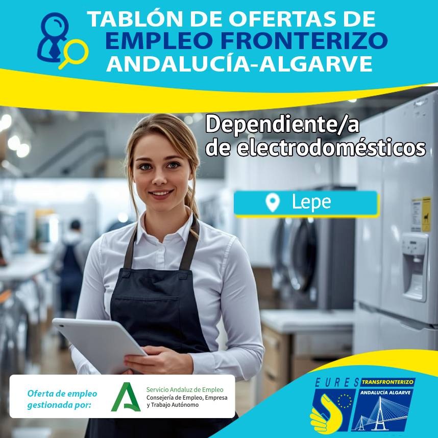 El EURES-T AA informa de estas 1 vacante de empleo para trabajar como Dependiente/a de electrodomésticos en Lepe.