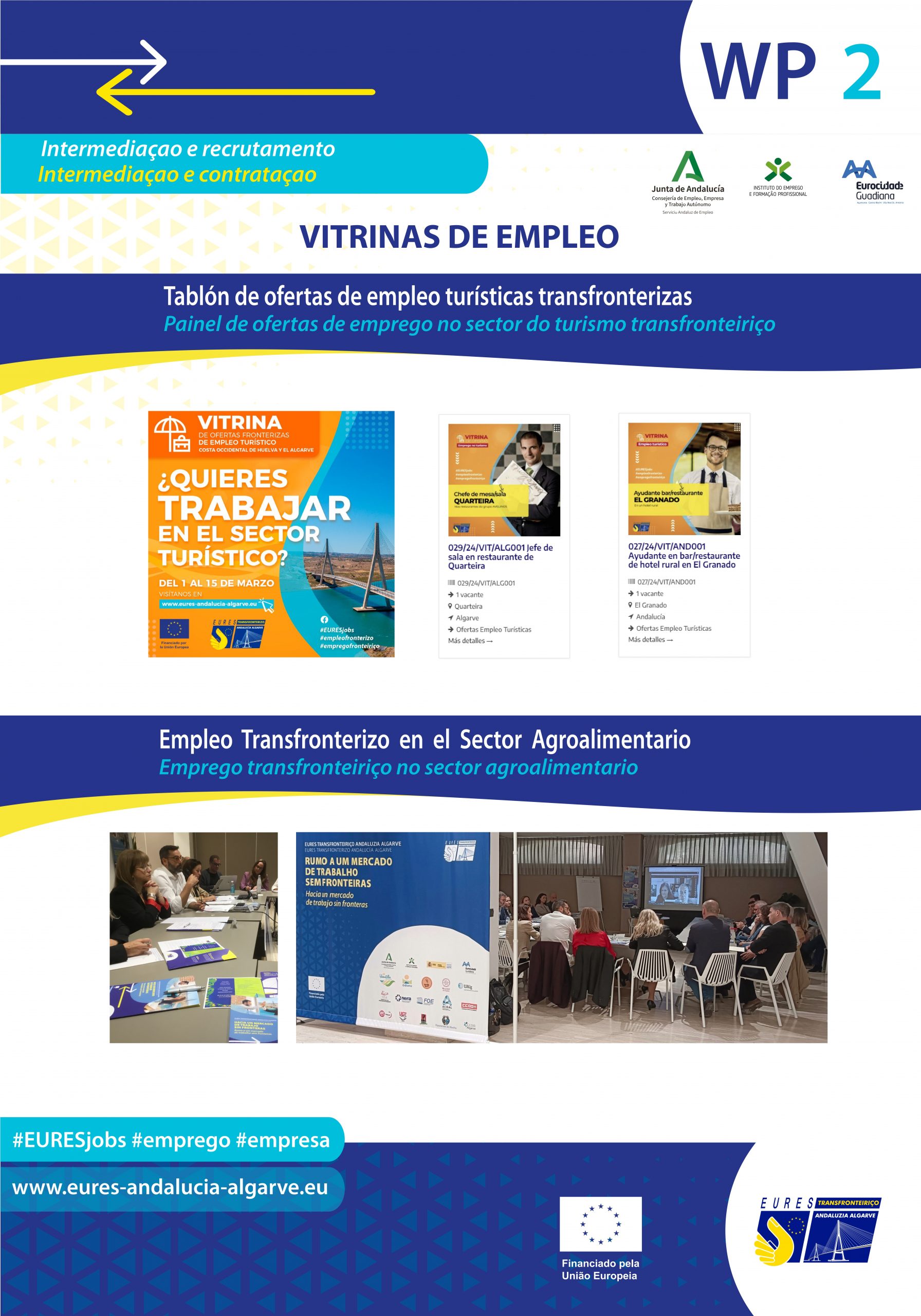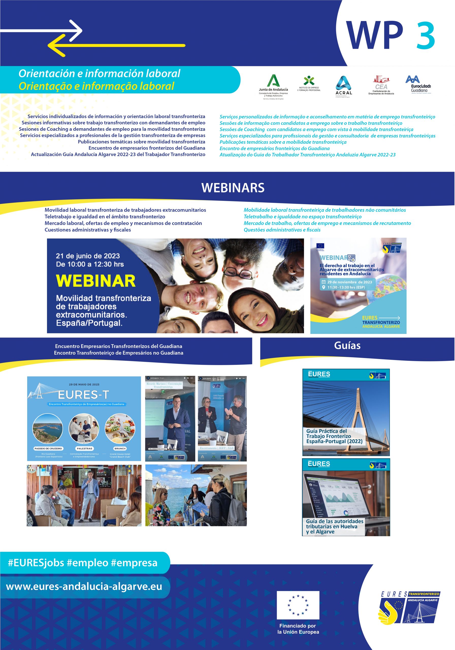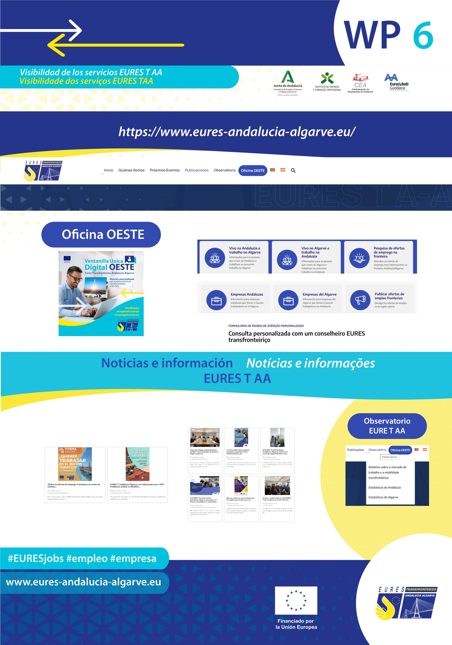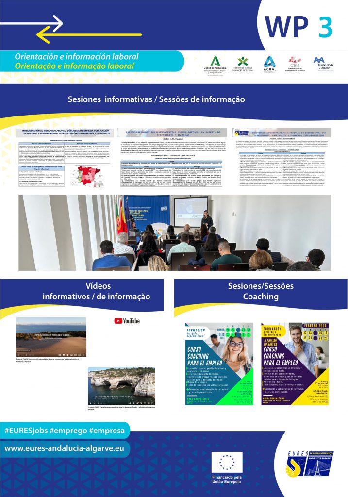 La coordinación de la asociación EURES Transfronteriza Andalucía-Algarve, con motivo del último Comité de Evaluación y Seguimiento celebrado en la localidad de Ayamonte el 24 de marzo de 2024, editó estas 12 infografías que recogen las principales actividades desarrolladas dentro del proyecto financiado por la Comisión Europea para el periodo abril/2022 a marzo/2024.
