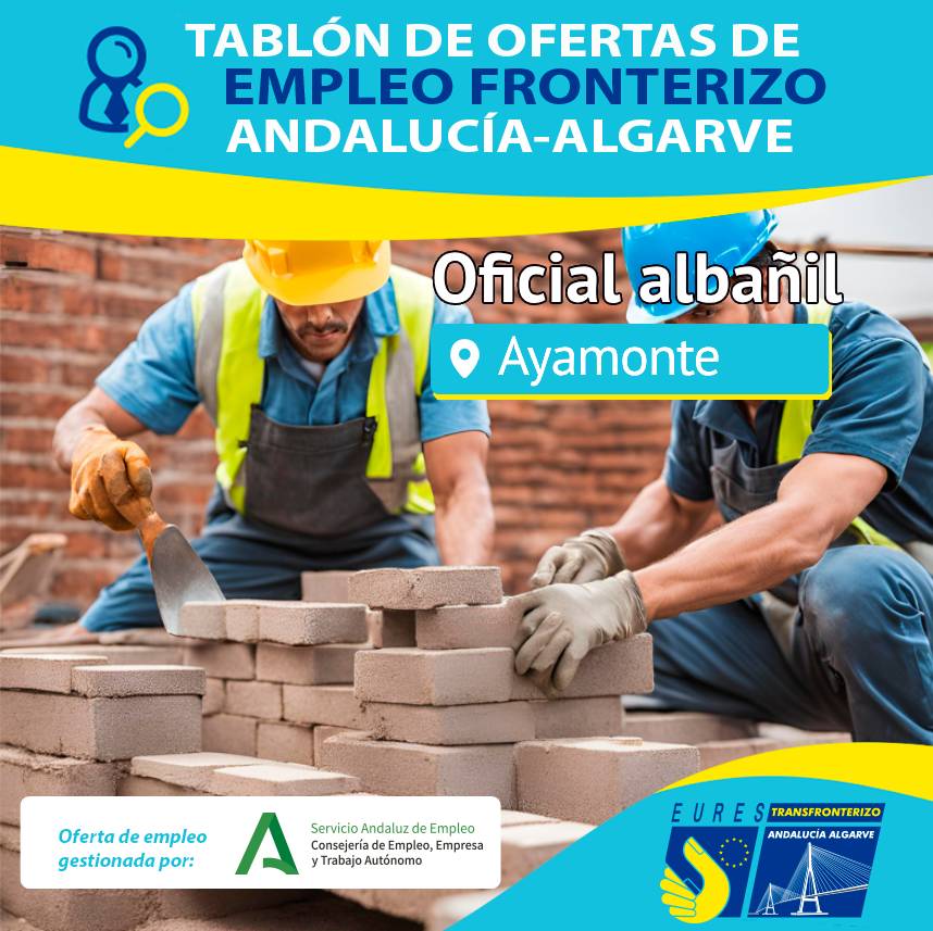 O EURES-T AA informa-o desta oferta de emprego para trabalhar como pedreiro de primeira classe em arranjos de espaços públicos em Ayamonte.