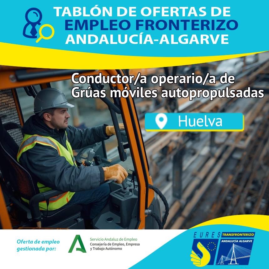 El EURES-T AA informa de estas 1 vacante de empleo para trabajar como conductor/a operario/a de grúas móviles autopropulsadas en Huelva.